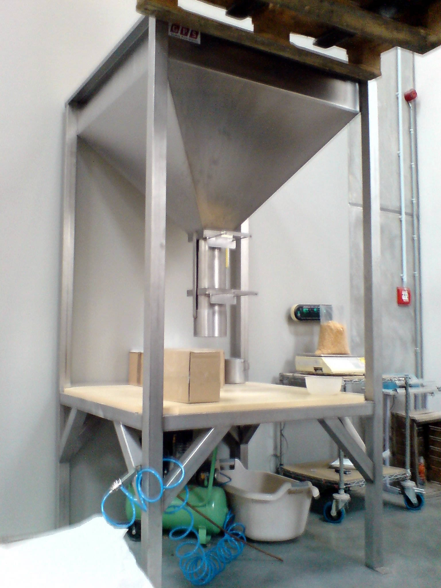 Pod soustavou šoupátek je umístěna laminovaná deska, která tvoří stůl na kterém je umístěna kontrolní váha. Všechny části zařízení přicházející do přímého kontaktu s dávkovaným produktem jsou vyrobeny z nerezové AISI 304 s potravinářským atestem.