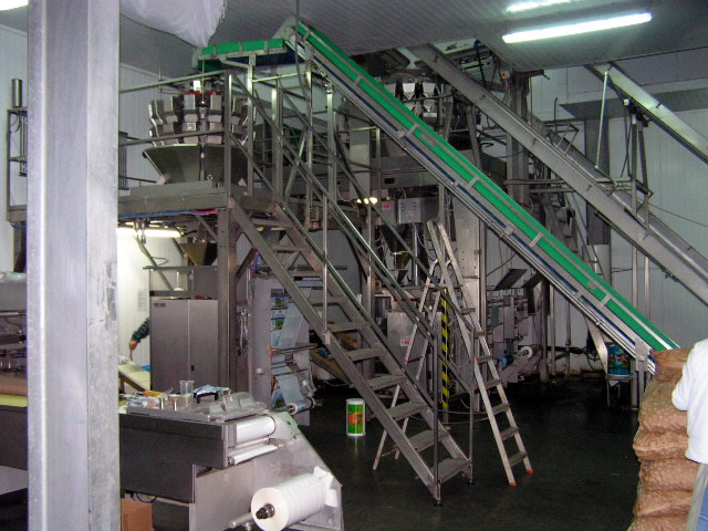 Na základě dlouholetých zkušeností z mrazírenských provozů vám nabízíme technologie na balení mražené zeleniny. Technologii vám postavíme na míru dle vašich potřeb, požadavků a možností. Technologie umožňuje podle provedení jedno, nebo více komponentní dávkování a balení. Základní sestava se skládá z míchání zeleniny, vynášecích dopravníků (překlápěčů), které vynáší a automaticky doplňují produkt do dávkovacích vah. Váhy mohou být žlabové, nebo kombinační podle požadovaného výkonu. Připravenou dávku produktu zabalí vertikální hadicový balicí stroj. Sáček je dopraven dopravními systémy k ručnímu, nebo automatickému skupinovému balení. Během dopravy je zkontrolována hmotnost sáčku průběžnou váhou a metaldetektorem je zkontrolována případná přítomnost kovu v balení. Pro uzavření sáčků používáme speciální systém sváření, který umožňuje kvalitní zavaření, vysoké výkony balení a má dlouhou životnost.
