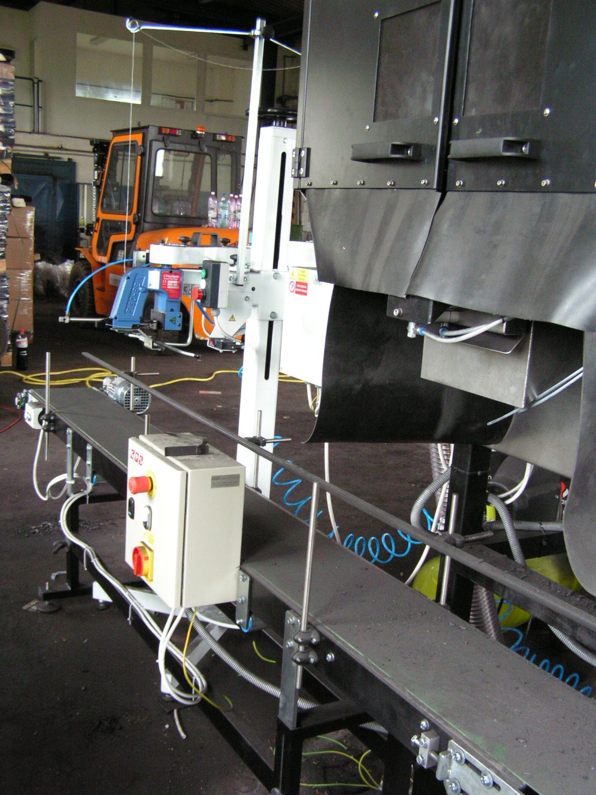 Po dosažení požadované hmotnosti dávky je pytel uvolněn na dopravník